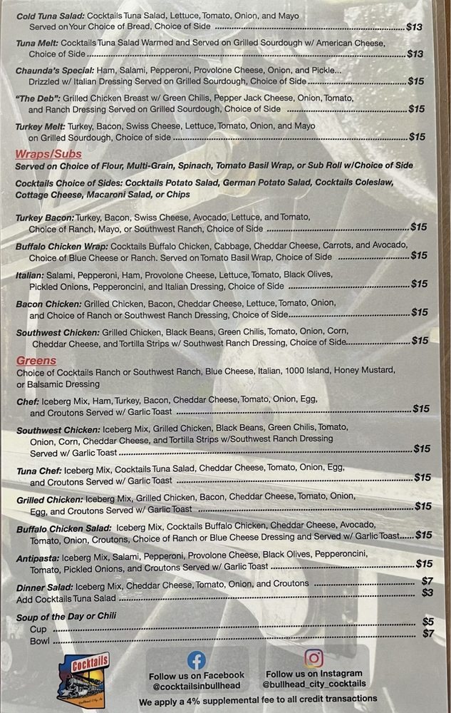 Welcome to Cocktails, an inviting eatery nestled in Bullhead City, Arizona, where exceptional food meets a vibrant atmosphere. Offering a simplified yet impactful menu, Cocktails specializes in delightful shareables and satisfying mains that cater to both casual diners and go-getters alike.